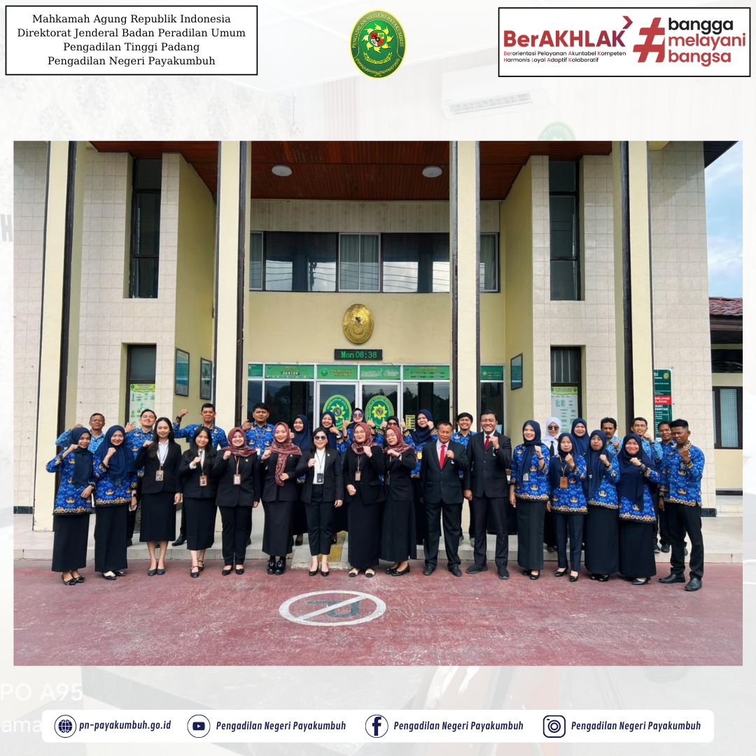 Upacara diikuti oleh seluruh unsur pimpinan, Hakim, Panitera, Sekretaris, para Pejabat Struktural dan Fungsional, serta seluruh pegawai pada Pengadilan Negeri Payakumbuh Pelaksanaan upacara berjalan tertib, dan penuh rasa nasionalisme.