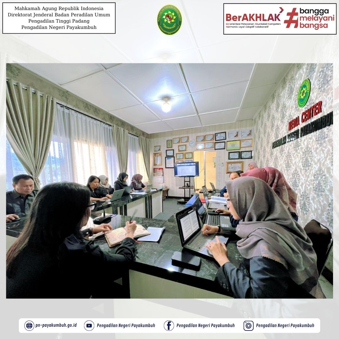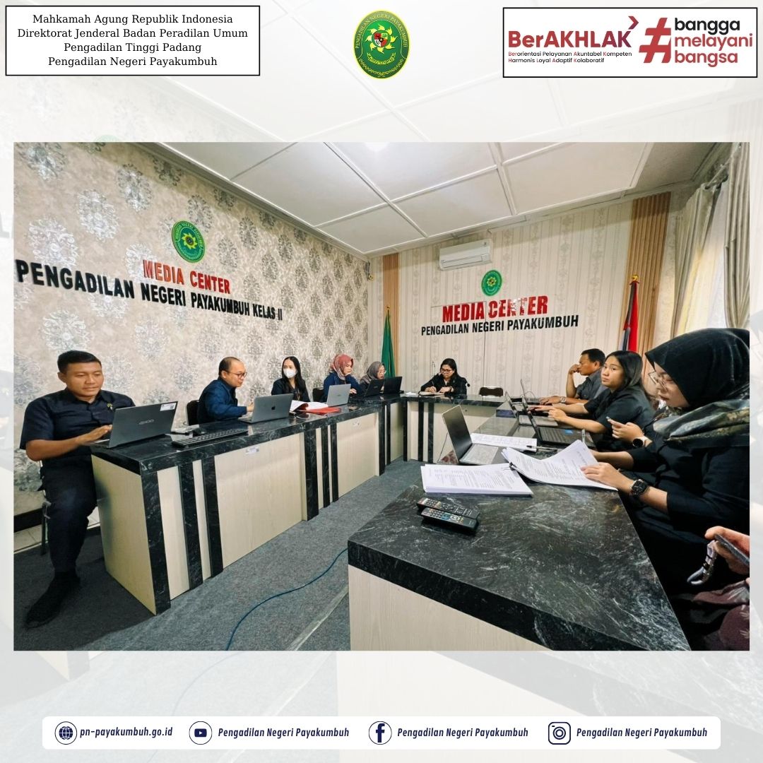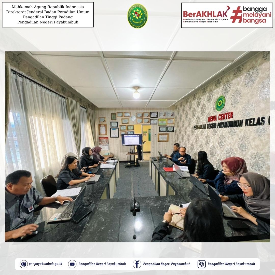 Payakumbuh - Selasa, 25 November 2025 | Ketua, Wakil Ketua, Bapak/Ibu Hakim, Bapak Panitera dan Bapak Sekretaris pada Pengadilan Negeri Payakumbuh mengikuti kegiatan Rapat Koordinasi Bimbingan Teknis KUHP Baru secara virtual di Ruang Media Center Pengadilan Negeri Payakumbuh.
