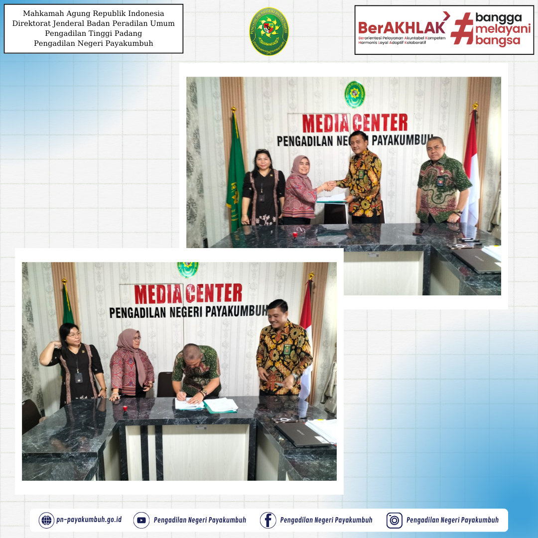 Payakumbuh | Jum'at, 2 Januari 2026 Ketua Pengadilan Negeri Payakumbuh, Bapak Adiswarna Chainur Putra, S.H., C.N., M.H. memimpin kegiatan Penandatanganan Perjanjian Kerja Sama / Memorandum of Understanding (MoU) antara Pengadilan Negeri Payakumbuh dengan POSBAKUM KHARISMA PILAR KEADILAN periode Tahun 2026 bertempat di Ruang Media Center Pengadilan Negeri Payakumbuh.