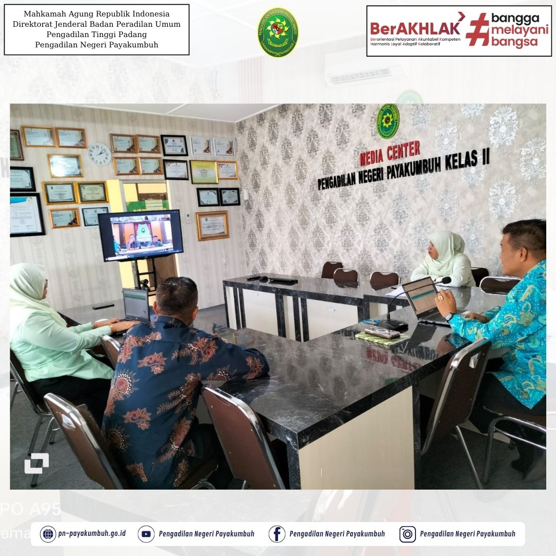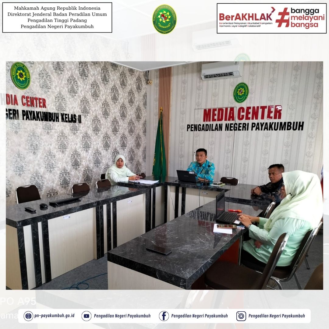 Payakumbuh, Jumat 7 November 2025 | Sekretaris Pengadilan Negeri Payakumbuh, Bapak Rengga Satria, S.Kom. beserta Kasubbag Umum dan Keuangan Pengadilan Negeri Payakumbuh, Ibu Junia Sari Wartati, S.H. dan Kasubbag PTIP Pengadilan Negeri Payakumbuh, Bapak Isral Makruf bersama Fungsional Analis Pengelola Keuangan (APK) APBN, Ibu Eka Zulfianti, S.E.. mengikuti kegiatan Zoom Meeting Virtual Rapat Monev Anggaran seluruh Pengadilan Negeri di Wilayah Pengadilan Tinggi Padang.